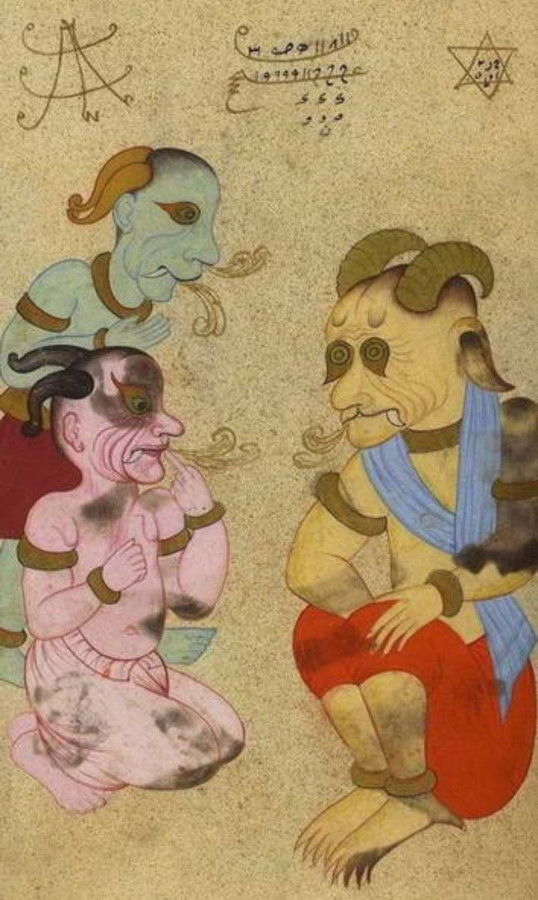 • Duşenbe güni Abdylla el-Hiýem ibni Ehlim Mürre (Müreh). Depesinde täji bar. Çadyry ýüñden. Kömekçileriniñ eşigi ak bolýar. Musulman bolup adyny Ýusuba öwrüpdir. Bolýan ýeri Türkiýäniñ häzirki Mardin welaýatynyñ Nusaýbin etraby bolup, ol şol ýeriniñ patyşasydyr. Boýy 150 sm bolup, elleri boýundan has uzyn görnüşe eýedir. Iki hyzmatkäri-de özüne meñzeýär. Ýyldyrym çaltlygynda hereket edip bilýär. Bu jyn Hezreti Muhammet pygamberiñ (s.a.w) iki eliniñ arasynda musulman bolan jyn patyşasydyr. • Sişenbe güni Mihrez el-Ahmer. Täji altyn. Çadyry ýüñden. Kömekçileriniñ eşigi gyzyl. Iblisiñ çagalaryndan biri. Gyzyl reñkli we adam sypatyndadyr. Adamlara musallat bolanda burnundan gan akdyrýar. Guýulary guradýar. Gyzdyryp ýatanlaryñ köpüsine galýusinasiýa görkezip bilme ukybyna eýe. • Çarşenbe güni Burkan. Täji bar. Çadyry ýüñden. Kömekçileriniñ geýimi sary bolýar. • Penşenbe güni Şemharuş (Şemhurış). Täji bar. Çadyry ýüñden. Kömekçileriniñ geýimi ak. Örän dana görnüşi bar. Sypaty adama has meñzeýär. Edýän işi: altyn, hazyna we ş.m. işlere eýelik etmek we bulary dolandyrmak. • Anna güni Ebýab (Ebýed) ýa-da Zewba (Zubea). Munuñ iki ady bar. Täçli. Çadyry ýüñden. Kömekçileriniñ geýimi ýaşyl bolýar. Aýyñ täsirindäki jyn patyşasy. Hemme ýany ak we gorkunç şekili bar. Sowukganly görnüşi bar. Dana we akylly jyn serdarlaryndan. Golastynda onlarça jyn hyzmatkäri bolýar. Söýgi we iki adamy birleşdirme güýjüne eýe. Daş görnüşi haýbatly patyşanyñ görnüşinde. Çagyryşlara añsat-añsat jogap bermeýär. • Şenbe güni Meýmun Ebu Nuh. Täji bar. Çadyry ýüñden. Kömekçileriniñ eşigi gara. Uranyñ ýer ýüzündäki jyny diýsegem bolýar. Garry sypatda we eli hasaly aýlanýar. Eñeginde ýedi sany uzyn tüýi bolýar. Köplenç guýynyñ gyralarynda we harabalyklarda gezýär. Uçup bilme ukyby-da bar. Kakasynyñ ady Deýbaj Afif. • Ýekşenbe güni Ebu Abdylla Müzheb. Täji bar. Çadyry ýüñden. Kömekçileriniñ eşigi ak. Bu ýedi patyşanyñ holastynda jemi 378 taýpa bar. Her patyşaha 54 taýpa düşýär we bu taýpalaryñ sanyny diñe Allatagala bilýär. Bu patyşalaryñ hökümine girmeýän ýene 42 sany taýpa bar. Bular şeýtany we azgyn jynlar. Täji altyn bolan Mihrez el-Ahmer ähli taýpalara höküm edip bilýär. • Beýleki jyn patyşalary Denaheş: Gezende jynlardan. Taýpasyndaky jynlar hyýal baglatma (galýusinasiýa) we adamlaryñ aklyny üýtgetme (was-wasy) güýjüne eýe. Hyýallarda ökde bolansoñ häzire çenli onuñ hakyky ýüzüni gören bolmandyr. Fekajin Megmet: Çagyrylanda çalt gelýän jynlaryñ biri. Arap dilinde ýazylan hemme kitapda diýlen ýaly onuñ ady agzalýar. Kemtemin: Iñ gorkunç jyn patyşalarynyñ biri. Çagyrylanda köplenç gorkunç ýüzlüdir. Mazerin: Arabystan ýarymadasyndaky dört uly jyn patyşalarynyñ biri. Urşujy görnüşi bar. Güýçli goşuny bar we bu patyşany tabyt göterýän ýaly tagtyny omzunda göterip barýan hyzmatkärleri bilen çagyrylan ýerinde gaýym bolýar. Senik: Örän güýçli jyn patyşasy. Ifritlerden düzülen goşuny bar. Diktator häsiýetde bolansoñ, oña kontrollyk etmek kyn. Ýaşaýan ýeri Arap ýurtlaryndaky ýarymadalardyr. Tagtyna oturan sowuk we orta ýaşly adamyñ sypatyndadyr. Teýkel: Arabystan ýarymadasynyñ iñ uly dört jyn patyşasynyñ biri. Örän güýçli jyn goşuny bar. Golastynda daglaryñ beýikliginde jynlar bar. Bu jyn okkultistik sanawdaky dört gaty elementden emele gelip, görer göze az-kem-de bolsa saýgarylyp, adamlara görnüp biler. Jynlar obýomy we agyrlygy bolmadyk, bu älemde başga ölçegde bolan (ýaşaýan) mahluklardyr. Halk dilinde jyn erkek, peri-de zenan diýip düşünilýär. Hakykatda-da ýagdaý şundan üýtgeşik däl. Jynlaram edil adamlar ýaly aýally-erkekli durmuşda ýaşaýarlar: dogulýarlar, ýaşaýarlar, köpelýärler, ölýärler. Ynançlary we ideallary bolýar. Gurhanda aýdylyşy ýaly jynlar tüssesiz otdan ýaradylypdyr. Başgaça aýdylanda energiýa utgaşmasydyr. Umuman şeýle diýip bileris. Jynlar obýomy we agyrlygy bolmadyk, bu älemiñ başga ölçegli (başga hili ýaşaýyşdaky) mahluklarydyr. "Men ol jynlary-da, adamlary-da diñe maña gulluk etsinler diýip ýaratdym" ("Zariýet süresiniñ 56-njy aýaty). Şeýle-de, jynlaryñ ilkinji atasynyñ Jann bolandygyny-da ýene Gurhandan bilýäris. "Janny-da yalyn otdan ýaratdy" ("Rahman" süresiniñ 15-nji aýaty). Gurhanyñ başga-da birnäçe aýatynda jynlaryñ ot görnüşinde ýer şarynyñ içine, merkezine çenli inmekde, asmanda ýagtylygyñ tizliginde gezmekde we ş.m. zatlary etmekde hiç hili kynçykyk çekmeýändikleri aýdylýar. Emma ýer şaryndan we onuñ töwereginden daşlaşyp bilmeýändiklerini-de Gurhandan bilup bolýar. Allanyñ jynlary ýaradandygyny hemmämiz bilýärler. Olar köplenç adamlaryñ añastyna girip täsir edýärler. Jynlaryñ öñem aýdyşymyz ýaly mantygy bolmaýar. Netije çykaryp bilmeýärler. Diñe berlen tabşyryklary ýerine ýetirýärler. Olaryñ adamlaryñky ýaly ýokary duýgulary ýok. Akyllaryny doly ulanyp bikmeýärler. Iñ esasy aýratyynlyklary - örän çalt hereket etmek ukyby we islän adamynyñ, islän närsesiniñ şekiline girip bilmegidir. Olaram adamlar ýaly iýip-içýärler, alkaşy, neşekeşi, türgeni bar. Adamlar nähili ýaşaýan bolsa, olaram şolar ýaly ýaşaýar. Meselem, garañkyda ýa-da ýagyşly howada bissimillasyz ýere basmazlyk, gije dyrnagyñy alnazlyk, sykylyk atmazlyk ýaly. Olaryñam dürli-dürli ýerlerde bolýanlary bar. Käbirleri hammamlarda, ot-çöp basyrylyp goýlan ýerlerde, hajathanalarda, poh-püsülli we kir-suwdyr zibil dökülýän hapa ýerlerde ýaşaýanlar bilen otaglarda, zalda, arassa ýerlerde ýaşaýanlary-da bar. Taýpalaryny 1-nji, 2-nji, 3-nji taýpa diýip, san bilen 
