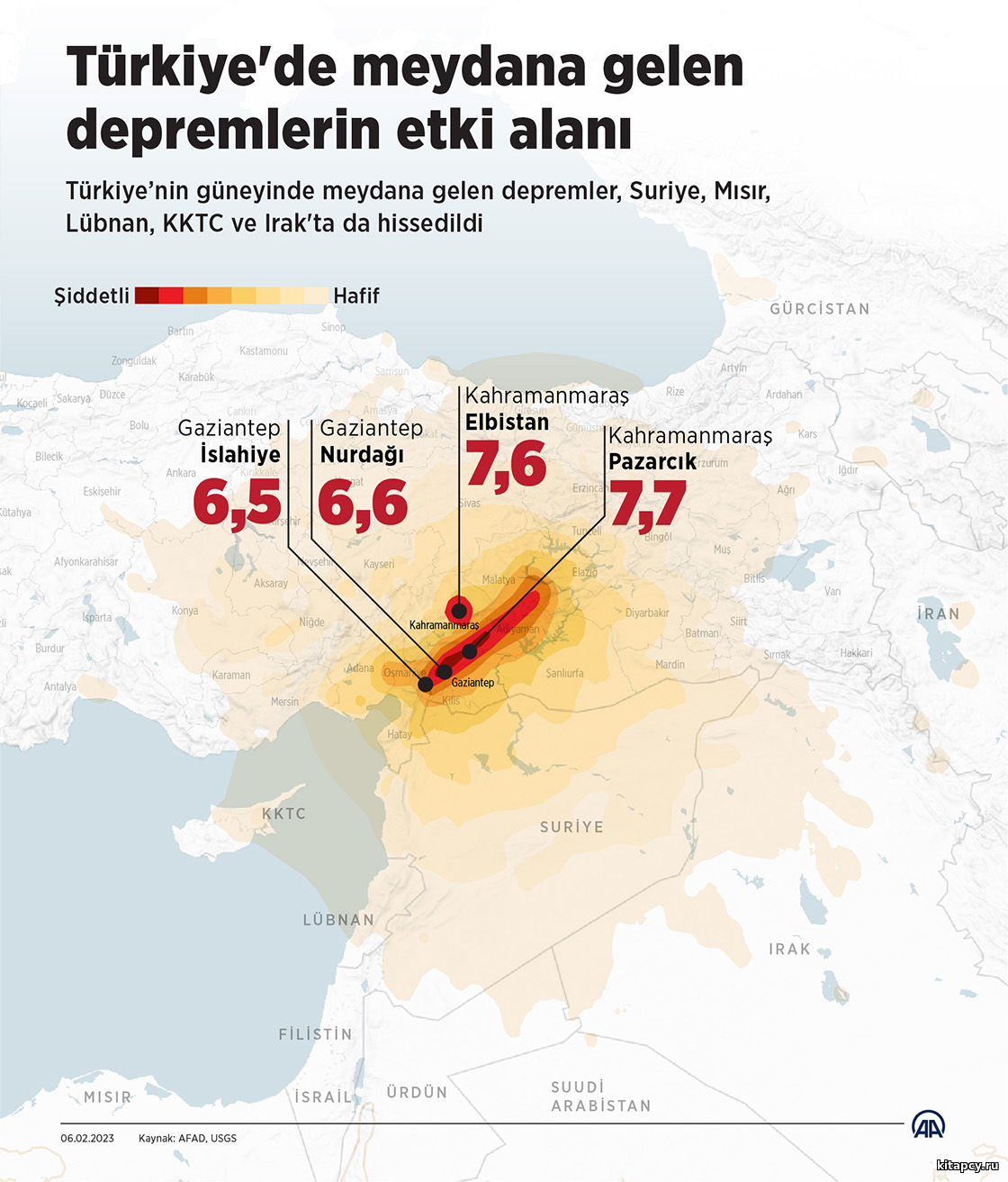 Halas ediş toparlary Siriýanyñ Lazkiýe şäherinde ýer titrändigi zerarly ýumrulan binanyñ ýerleşen ýerinde ölmän galanlary gözleýär. ("Reuters" habarlar gullugy) • Binalar ýumrulyp, doly weýran bolan ýerler bar Ysmaýyl Abdylla Siriýanyñ demirgazyk-günbataryndaky Idlib şäherinde ýaşaýan binasynda sagat 04:17 uçurlary "kyýamat gününiñ" gelip, hemmeleriñ tisginip oýanandygyny aýtdy. Siriýaly "Tiz kömek" gullugynyñ işgäri bir aýlyk bäbejigini gujagyna gysypdyr. Halas bolmak üçin bary-ýogy birküç sekundy galanda, ýatan düşeginiñ üstüne potologyñ bir bölegi çökende saklanjak bolup böküpdir. Duldegşir goñşusy onuñ ýaly nesibeli däl eken. Goñşy jaýyñ blogy çökensoñ, öñem uruşyñ gidýän birnäçe ýerinden gaçyp gelip, öz ýurdunda öýünden-ilinden jyda düşürilen maşgalanyñ 15 agzasy ölüpdir. Abdyllanyñ oturan ýeriniñ töwereginde oppozisionerleriñ elindäki ýerlerde on ýyl bäri dowam edip gelýän graždanlyk urşy zerarly harap bolan binalaryñ barsy ýykylypdyr. Halk arasynda "Ak kaskalylar" ady bilen tanalýan Siriýanyñ Raýat Goranyş guramasynda meýletin işleýän üç çagaly 36 ýaşly ata "Hamana kimdir biri eli bilen jaýlary agdar-düñder edýän ýalydy, kyýamat güni gelen ýaly boldy. Üçekler hallan atýardy, sekuntlara çeken aýylganç pursatlar bolup geçdi" diýýär. Abdylla häzir ýaralylary we ölüleri kesekleriñ astyndan çykarmak üçin işleýär. Hemme zady kesegiñ astynda galan maşgalalar bar, häzire çenli adamlary halas etmäge dyrjaşdyk. Ýöne ýagdaý "Ak kaskalylaryñ" çözerinden çökder. Munuñ hötdesinden gelmek üçin döwlet derejesinde iş alyp barmak gerek. Tutuşlygyna ýok bolan obalaryñ, şäher raýonlarynyñ gürrüñini edýärin. Türkiýäni we Siriýanyñ demirgazyk-günbataryny uran 7.8 ballyk ýer titremesiniñ yzysüre azyndan 3 müñ 500-i Türkiýeden, jemi 5 müñden gowrak aram gurban boldy we müñlerçe adam ýaralandy. Añzakly gyş gününiñ dañdan uçurlary emele gelen ýer titremesi Kiprdd we Liwanda-da bildirdi. Oppozisionerleriñ garamagyndaky demirgazyk-günbatar sebitdäki halas ediş işgärleriniñ we Damask hökümetiniñ berýän maglumatyna görä, 11 ýyldan gowrak dowam eden çaknyşyklar sebäpli öñdenem harap bolup ýatan Siriýada 1600-den gowrak adam gurban boldy. Abdylla toparlarynyñ noldanam pes şertlerde we garda çakgan hereket edip, ölmän galanlary tapmaga jan edýändigini aýtdy. "Ak kaskalylaryñ" "The Independent" bilen paýlaşan wideoýazgylarynda kelleçyra dakynan meýletinler ýörite byçgylar bilen bölekleýän äpet beton üýşmekleriniñ arasyna girip, gömlüp galan raýatlary tapjak bolýarlar. Sesi titräp durandygy duýulýan Abdylla "Gaty kän mukdarda kömege mätäçligimiz bar, çünki şeýle betbagtlygy ýeke özümiz başymyzdan sowar ýaly däl" diýip, sözüni dowam etdirdi. Bärde ýaşaýan adamlaryñ galabasy uruş zerarly birnäçe gezek öýlerinden-illerinden jyda düşürildi. Bärdäki saglygy goraýyş ulgamy gowşak, geçen pandemiýa we uruş zerarly "öýkeni bagryna ýapyşan" ýagdaýda. Gitmäge ýer ýok. Ýer titremesiniñ merkezi nokadyna ýakyn bolan, Türkiýäniñ günortasyndaky Gaziantepde ýaşaýanlaram ýatan ýerlerinden galkyp turandyklaryny, Garda we doñduryjy ýagyşda binalaryñ çökendigini gürrüñ berdiler. Ýer titremesinde ýaralanan adam Idlib welaýatynyñ Darkuş şäheriniñ "El Rahme" hassahanasyna äkidilýär. ("AP" habarlar gullugy) Siriýanyñ Amerikan Medisinasy jemgyýetiniñ (SAMS) Ýakyn Gündogar sebiti boýunça direktory Mazen Kewara, şäherde oturan jaýynyñ bölekleýin zaýalanmagynyñ yzyndan gaçyp özüni atan awtoulagynda oturan ýerinden "The Independent"-iñ sowallaryna jogap berdi. Kewara SAMS-yñ Siriýanyñ demirgazgyndaky hassahanalaryñ hemmesiniñ agzy-burny bilen dolandygyny aýtdy. Demirgazyk Siriýa bilen Türkiýäniñ arasyndaky "Bab el-Hawa" gümrük postunda esasy desgalary, ýerleri doldurandygy üçin hassalary yzyna gaýtarmaga başlapdyr. Ol "The Independent"-e alaçsyzlyk bilen "Ähli "Tiz kömek" gullugynyñ otaglary doldy, hassalary koridorlarda bejerýäris, koridorlaryñ ugram, beýlek hassahanalaram doly" diýdi. Desgalarymyzyñam dördüsi zaýalandy we başga ýere göçürildi. Idlibde zaýalanan bäbekhanada kömek berilen göwreli aýalyñ aradan çykandygyny, ýöne lukmanlaryñ heniz dünýä inmedik bäbejigi halas etmegi başarandygyny aýdýar. "Täze doglan çagalary başga hassahana ýerleşdirmäge mejbur bolduk. Kyn ýagdaýyñ hötdesinden geljek bolýarys. Türkiýedäki ýer titremesiniñ ýykan-ýumranlygyndan halas edilen on ýaşlyja çaga. ("Anadolu" habarlar gullugy) Şular ýaly uly giñişlikde şular ýaly derejedäki weýrançylygy öñ görmändik". Kewara esasanam Demirgazyk Siriýanyñ saglygy goraýyş enjamlaryna we serişdelerini ýiti mätäçlik duýýandygyny, saglygy goraýyş ulgamynyñ ýer titremesinden öñem çöken ýagdaýdadygyny aýtdy. Ilatyñ ýarsy Siriýanyñ uruş zerarly harap bolan ýerlerinden öz ýurdunyñ içinde öý-ilinden jyda düşürilen ýagdaýda we bularyñ üçden biri lagerlerde çadyrda ýaşaýar. Gyş paslynyñ gelmegi bilen mundan öñem adamlaryñ görýän görgüsi ýetikdi. Kewara "Gyssagly saglyk hyzmaty toparlaryndan başlap ýatakhanalara çenli hemme zada mätäçligimiz bar. Halkara jemgyýetçiligi mümkin bolan her dürli gumanitar kömegini ýollasa gowy bolardy" diýýär. Halas ediş toparlary Siriýanyñ gozgalañçylaryñ elindäki Jinderes posýologynda ölmän galanlary gözlemäge taýýarlanýar. ("Reuters" habarlar gullugy) Türkiýäniñ Adana şäheriniñ ýaşaýan biri öýüniñ golaýyndaky üç binanyñ çökendigini aýtdy. Muhammet Fatih Ýawus halas ediş işgärleriniñ özüne ýetjek bolanlarynda kesekleriñ astyndan sag gutulan başga biriniñ "Dat, ýetiñ, indi güýjüm 