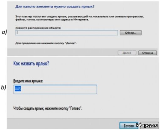 • Täze papkanyň döredilişi: 1. Penjiräniň iş meýdanynda syçanyň sag gulagyna basmaly (iş stolynda ýa-da papkanyň içinde). 2. Создать - Папку yzygiderligi saýlamaly (1.8-nji surat). 3. Täze papkanyň adyny klawiaturanyň kömegi bilen girizmeli. Papkanyň adyny girizmek Enter klawişe ýa-da açyk ýerde syçanyň çep gulagyna basmak bilen tamamlanýar. Papkanyň adyny üýtgetmek üçin, papkanyň üstünde syçanyň sag gulagyna basmaly we gapdal menýudan Переименовать buýrugy saýlamaly ýa-da papkanyň adynyň üstünde syçanyň çep gulagyna basmaly. Papkanyň adyny üýtgetmegiň iň çalt usuly – papkanyň belläp F2 klawişe basmaly. • Obýektiň ýarlygynyň döredilişi: I. Obýekti belläp onuň üstünde syçanyň sag gulagyna basyp saklap tutup çekmek bilen döretmek (1.9-njy surat). II. Ýarlygy awtomatik döretmek üçin, iş stolynda ýa-da penjiräniň iş meýdanynda açyk ýerde syçanyň sag gulagyna basmaly we gapdal menýudan Создать ярлык buýrugy saýlamaly. Soňra: 1. Обзорь düwmejigine basmaly (Обзор gepleşik penjiresi açylýar (1.10-njy a surat)). 2. Papkada sanawy açýan düwmejige basmak arkaly gerekli disk saýlanýar. 3. Gerekli faýly tapyp, ony belläp, Открыт düwmejige basmaly. 4. Далее düwmejige basmaly. 5. Programmalaryň ady saýlanýan penjire açylandan soň, özüňize gerekli ýarlygyň adyny girizmeli. 6. Готово düwmejige basmaly(1.10-njy b surat). Obýektiň nusgasyny döretmegiň (göçürmek, kopiýa etmek)tärleri: (Nusgasy döredilýän obýekt ilki bilen bellenýär (syçanyň ýa-da klawiaturanyň kömegi bilen)) 1. Syçanyň sag gulagyna basyp tutup çekmek arkaly (bir diskiň çäginde). 2. Syçanyň sag gulagyna basylanda açylýan gapdal menýunyň kömegi bilen. 3. Klawiaturanyň klawişleriniň (Ctrl+C) kömegi bilen. Obýektiň nusgasy döredilenden soň ony goýluşy (ýerleşdirmek): Obýektiň nusgasy döredilenden soň ony goýuljak ýerinde (papkasynda) aşakdaky ýaly usullarda goýmak bolýar: 1. Syçanyň sag gulagyna basyp tutup çekmek arkaly nusgany döretmek we goýmak (bir diskiň çäginde). 3. Syçanyň sag gulagyna basylanda açylýan gapdal menýudan peýdalanmak. 4. Klawiaturanyň klawişleriniň (Ctrl+V) kömegi bilen. • Obýektleri kesip geçirmegiň usullary: Obýektleri kesip geçirmek üçin obýekt ilki bellenýär(syçanyň ýa-da klawiaturanyň kömegi bilen), soňra aşakdaky usullaryň biri ulanylýar: 1. Syçanyň sag gulagyna basyp tutup çekmek arkaly kesmek we goýmak (bir diskiň çäginde). 2. Menýular setirindäki buýruklar (Вырезать) bilen. 3. Syçanyň sag gulagyna basylanda açylýan gapdal menýudan peýdalanmak bilen. 4. Klawiaturanyň klawişleriniň (Ctrl+X) kömegi bilen. Obýektleri öçürmegiň (ýok etmek) usullary: 1.Tutup çekmek arkaly (sebede oklamak). 2. Syçanyň sag gulagyna basylanda açylýan gapdal menýunyň kömegi bilen. 3. Klawiaturanyň (Delete klawişiň) kömegi bilen. Annamuhammet ALLAGULYÝEW. | |