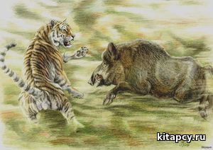 Вдоль реки начинался густой камышовый лес. Чем дальше в лес, тем гуще и темнее. Реджебалы мерген идя между деревьями снова подумал о барсе с бархатной шкурой. Поймать этого барса была мечтой всей его жизни. Полосатая шкура барса сверкала на солнце, радуя взор. Он совсем рядом ходил и потягивался как будто, кроме него никого не было в лесу. И вот он только подошел поближе к нему как он зарычал. Реджебалы вздрогнул и открыв глаза увидел жену и дочь. «Тьфу ты! Опять сон приснился…» В первый раз он увидел шкуру барса в доме друга Розы. Он когда-то поймал одного такого и спустив шкуру постелил его у очага. И вот сидя на нем он начал мечтать поймать такого же барса и так же постелить его шкуру дома. Лес жил своей жизнью, ото всюду слышны пение птиц. Он шел по лесу, принюхивался, посохом прощупывал дорогу. И тут он наткнулся на бугорок усыпанный листьями. Он осторожно протянул посох к нему. Ловушка с глухим звуком захлопнулась, поймав кончик посоха. Он отбросил ловушку в сторону пошел довольный собой. Он всем своим видом говорил «В этом лесу охотится, имею право только я». Он считал, что быть охотником не хуже чем быть мясником. Слушая запах леса он шел раздумывая о своей добыче. Деревья становились реже. Дойдя до поляны, он решил перевести дух и остановился. Платком вытер пот со лба, посмотрел по сторонам. И тут он заметил, что в кустах что-то шевелиться. Он не успел даже опомнится. как все произошло. Огромный кабан с большими белыми клыками набросился на охотника, грозно рыча. Реджебалы покатился в сторону, а кабан не удержавшись, по инерции побежал вперед. Остановившись, недалёко он развернулся назад, и с еще большей яростью набросился на охотника. Мысленно прочитав молитву, «И вот и пришел мой конец» подумал охотник. Вдруг как из под земли, откуда-то появился барс, с разбега перепрыгнув через лежачего охотника, он оказался напротив яростного кабана. В долю секунды они вцепились друг в друга и покатились в сторону. Придя в себя, Реджебалы наконец встал на ноги. Он весь трясся. Весь лес как-будто замер от страха, не было слышно даже пение птиц. Полностью придя в себя, он заметил барса, лежавшего недалеко. У него было распорото брюхо. Еще подальше лежал кабан, с перегрызенным горлом. Но он был еще жив и бился в агонии. Теперь только до охотника дошло, что, барс взявшиеся из ниоткуда принял удар на себя. Он перегрыз кабану горло, а тот защищаясь, копытами распорол барсу брюхо. Реджебалы не мог поверить в произошедшее. Он всю жизнь мечтал снять черную, шёлковую шкуру с этого барса. Представлял, как будет сидеть на нем, гладить и радоваться. Потерявший много крови барс, еле дышал. Глаза его налились кровью. Он в первый и последний раз посмотрел охотнику в глаза. В его взгляде была просьба, и он все понял. Он подошел к кабану и выстрелил ему прямо в лоб. В этот момент, и барс испустив дух, закрыл навеки глаза. Охотник подошёл к барсу и сел. Он гладил его шелковую шкуру и думал: «Я столько раз представлял как спущу твою прелестную шкуру но разве теперь у меня поднимется на это рука? Ведь ты мой спаситель…» Сылапберди Мухамов. Перевод Надира Исмаилова. | |
