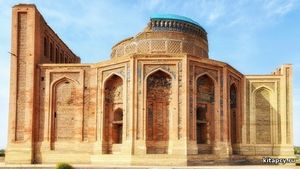 XVI asyrda salnan bu ymarat henize-bu güne çenli öz durkuny saklaýar. Ine, öñüñizde gadymýet dur, Özüniñ şatlygy, hasraty bilen. Ine, öñüñizde gadymy taryh, Heniz açylmadyk bir gaty bilen, Güni-güzerany, pyrkaty bilen. Kim döretdi bu ajaýyp sungaty, Nesiller, asyrlar dymýar bu mahal. Niçik boldy ussalaryñ ykbaly, Göz öñüme gelýär, ine, Täçmahal. Beýik zady ýer ýüzünden sypyrmak, Asyrlara eýgertmändir hiç mahal. (Taryhyñ gatyna çümýärsiñ bada, Beýikligi görüp, oýlansañ sähel). On ädim gapdalyñ beýik minara, Bize gadymýetden galan ýadygär. Olaryñ hemmesi beýiklik ahyr, Olar asyrlardan asyra ädýär. Asyrlaryñ şatysyna döz gelen Beýik sungat bilen Gürleşip durun. Geçmiş bolsun, köne bolsun parhy ýok Beýik zada başym egmek dessurym. Allaýar ÇÜRIÝEW. | |